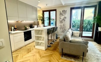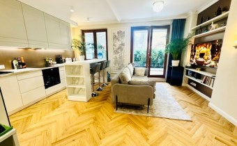 This unique apartment stands out not only for its prime location, but above all for its rare feature – a spacious private garden that seamlessly extends the living area. It offers a perfect setting for relaxation, entertaining guests, and enjoying everyday life surrounded by greenery, without compromising the convenience of urban living.